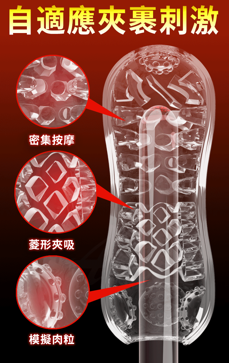 內部設計精妙,具備強力的夾吸包裹功能,帶來全方位的刺激。通過模擬真實環境,讓您在每一次使用中都能體驗到最真實的快感。久練有力,讓您逐漸提升耐力和控制力。