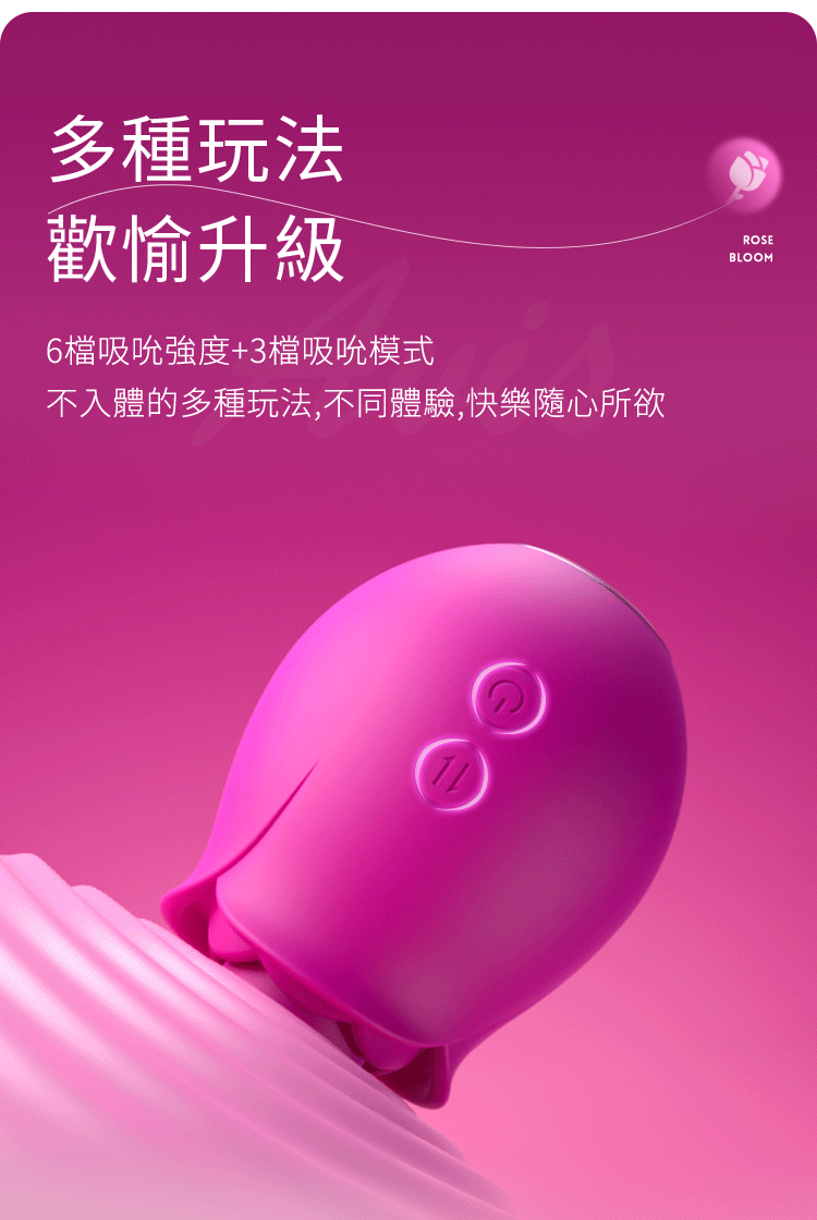 玫瑰輕啜,心底泛起漣漪。圓潤探頭尋覓敏感花蕊,輕輕一吸,喚醒多巴胺的悸動,讓快樂在此刻蔓延、纏繞。