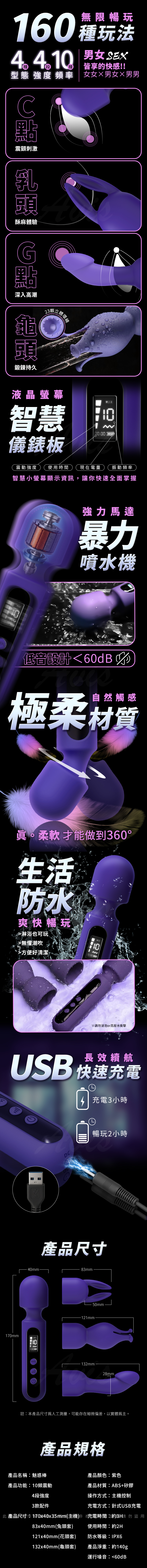 產品名稱:魅惑棒|AV強力震動 三頭套|液晶顯示按摩棒