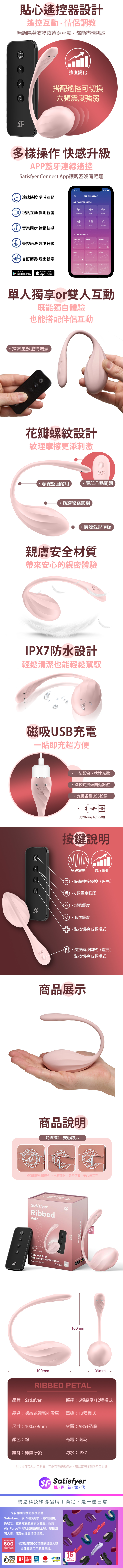 品名:Satisfyer Ribbed Petal|螺紋花瓣智能震跳蛋 粉