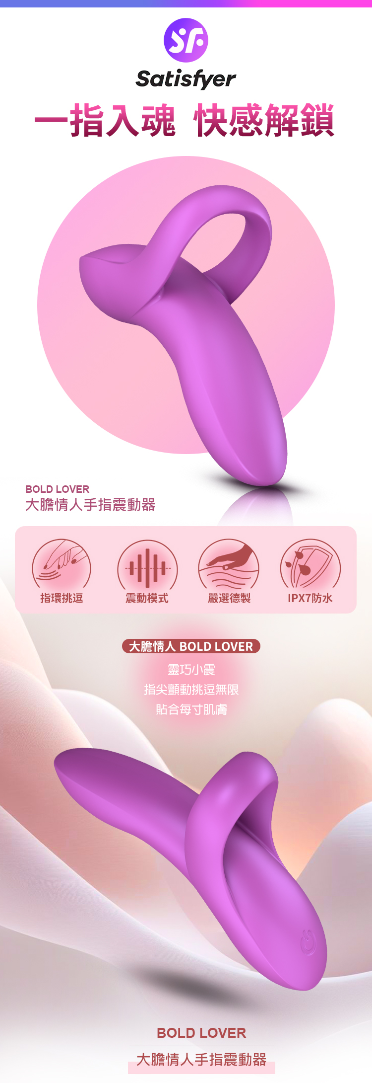 品名:Satisfyer|Bold Lover|大膽情人 多功能手指震動器 桃紅